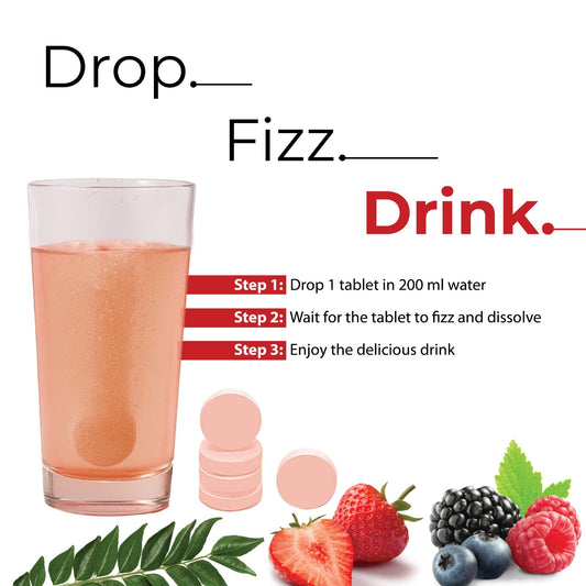Iron Berry Effervescent Tablets – Plant-Based Iron + Vitamin C, B12 & Folic Acid for Energy & Haemoglobin Support