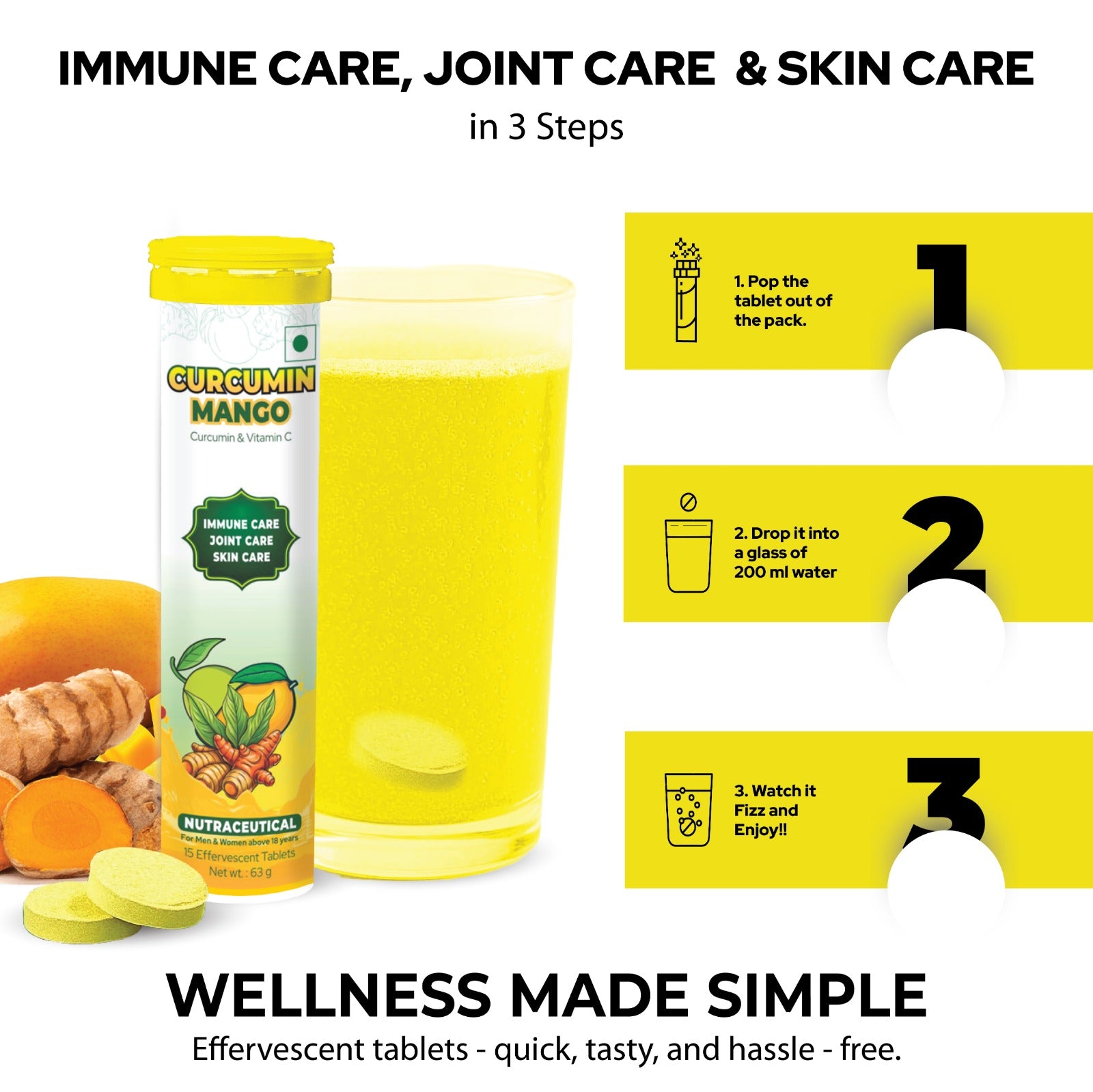 Introducing Curcumin Mango: Unleash the Power of Golden Health!Boost immunity, soothe joints, and glow with radiant skin! ,Our deliciously refreshing mango-flavored effervescent formula combines: